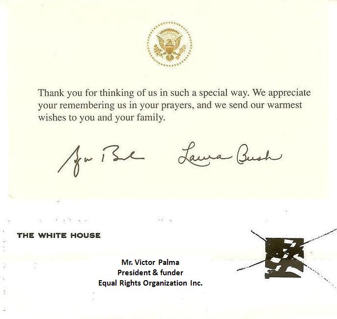 The sole purpose of the information contained in this Equal rights Organization Inc. document is to show the legitimacy of the organization’s history. Mr. Victor Palma, President & Founder of Equal Rights Organization Inc. is not involved in any political activity nor is inclined to favor any political party. His relationship with political figures from the Federal Government, State Government, Federal Congress or State Senate who appear in this document is solely and exclusively concerned with humanitarian issues.Mr. Palma has always voluntarily served the entire community based on personal effort and sacrifice. He has offered his efforts and life to those in most need with the help of God.On a personal level, Mr. Palma has experimented by first-hand countless injustices in his life, injustices that he has been able to overcome through his faith in God and with the firm belief that things can change for better.Mr. Palma, humbly and respectfully appreciates the participation and help offered by all those public servers who at some point played an important role supporting Equal rights Organization Inc. and continue to do so in order to reach a hand for those in most need.Today, after many years of humanitarian social service, effort and sacrifice on behalf of the less fortunate, he has been recognized by government authorities such as Texas Governor Rick Perry, among others. Recognitions that give Equal Rights Organization Inc. the strength and joy to continue doing what we do.The idealism of Mr. Palma is based on inherent values of this wonderful country which is the United States of America. Values such as democracy, justice, freedom and loyalty. Influenced and inspired mainly by God’s eternal love he intends to follow one of its most important commandments.Profess love to your neighbor.Thank you very much for your attention and caring. Our sole objective is, and will continue to be, serving our community.Not all images are in the public domain; some images May be protected by the U.S. Copyright Law (Title 17, U.S.C.). Do Not Duplicate Without permission from copyright holder. Copyright information is Provided Whenever possible, but it is ultimately the Responsibility of the user to determine and Satisfy the copyright and Other Restrictions.If You Have Further questions, please contact the Equal Rights Organization Inc.